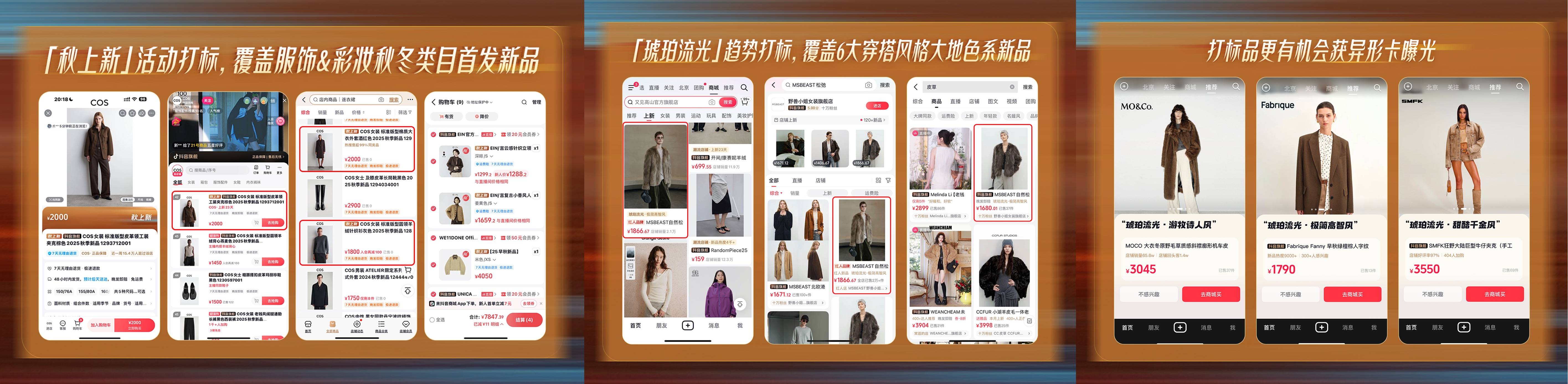 在用户运营方面,今年「秋上新」趋势造风能力再升级,从色彩趋势到“五感感知”,扩大趋势触点;并聚焦高消费、年轻、质价比三大核心人群,联动头部舰长品牌跑通定向投放,助力品牌高效拉新。