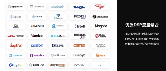 接入 50+ 优质、可信的 DSP 平台